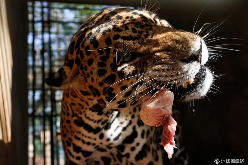 帕拉瓜納動物園中的豹正享用得來不易的肉。