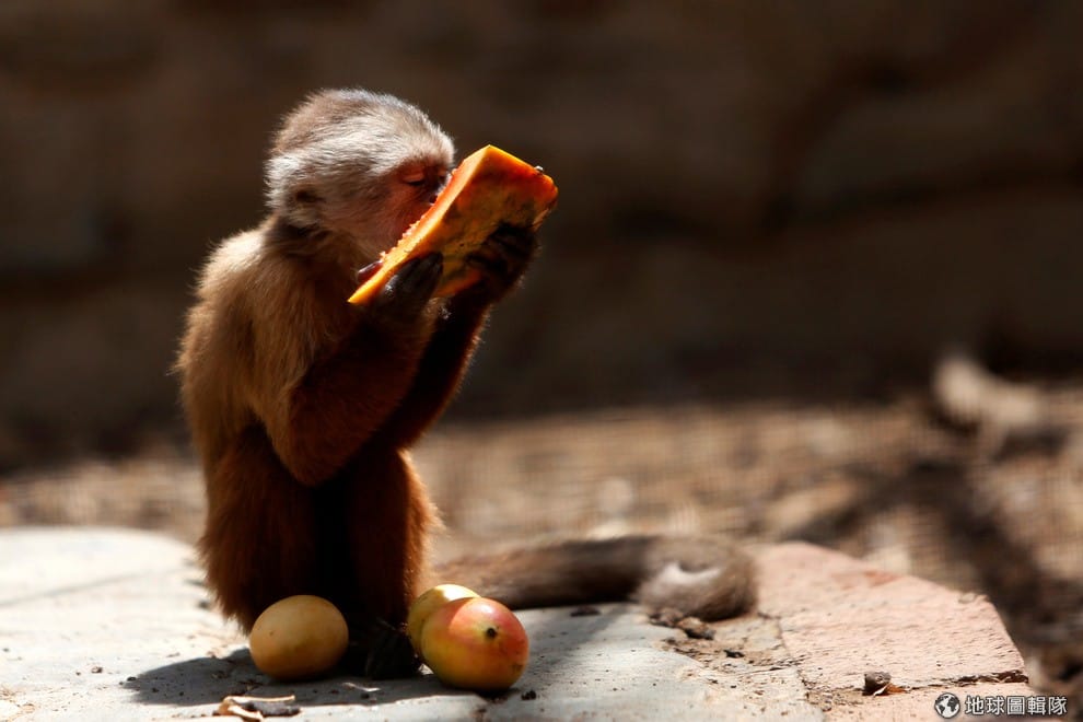 路透社帕拉瓜納動物園的捲尾猴吃著木瓜。