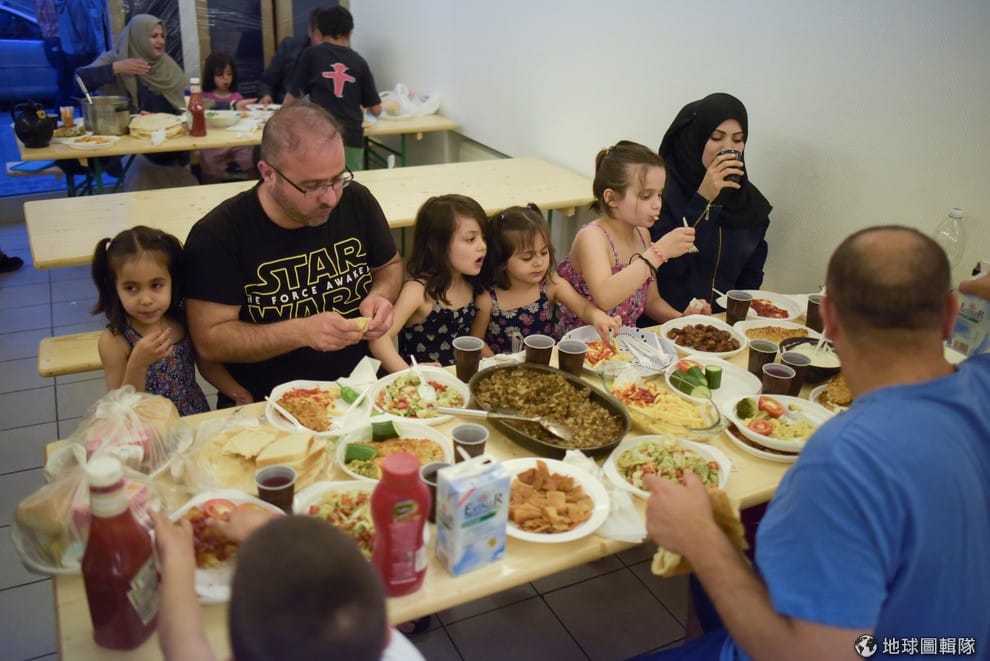 路透社來自敘利亞的難民家庭在收容中心內,享用家人團聚的時光還有開齋飯。