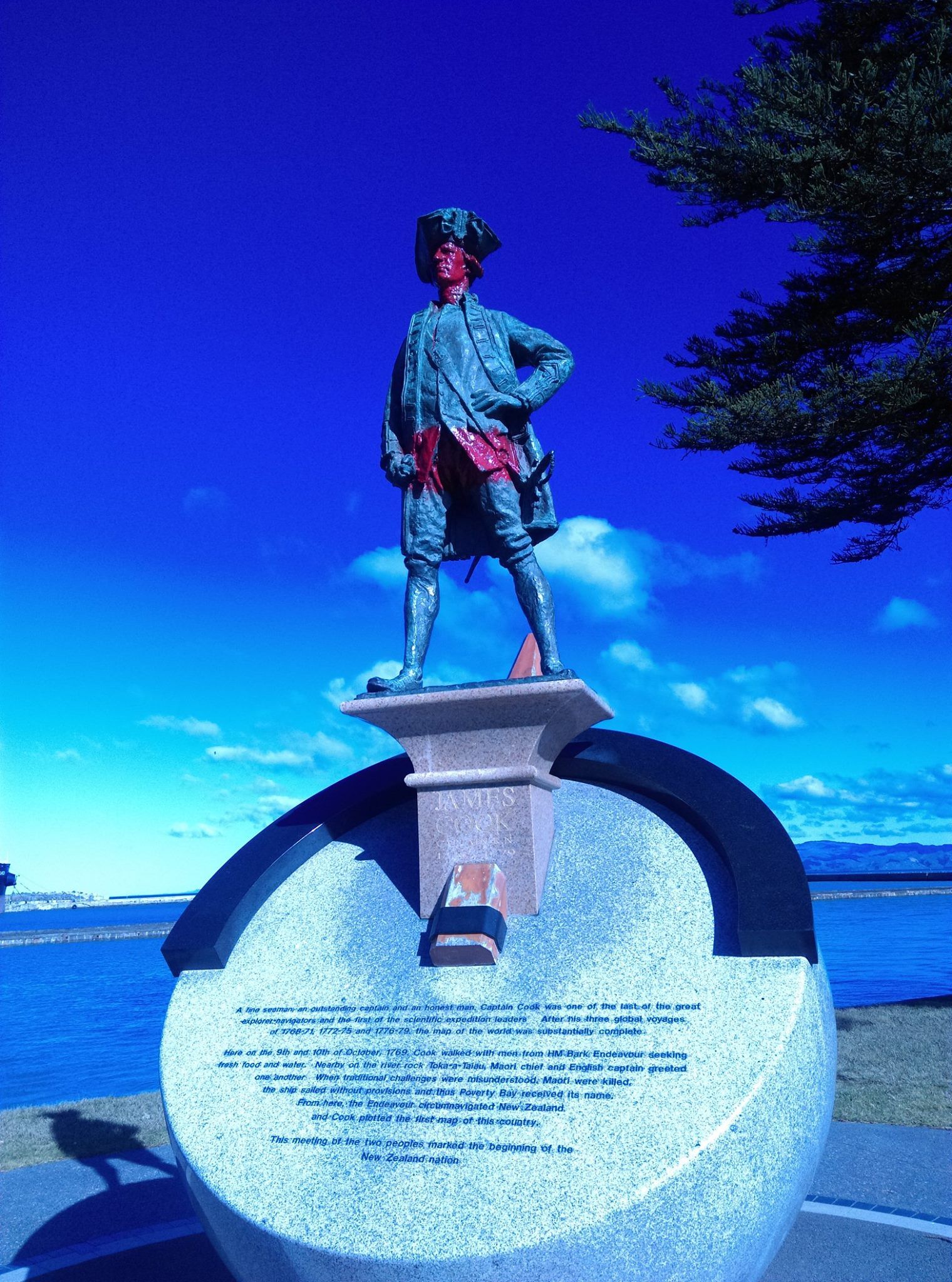 《衛報》、《毛利電視台》、《紐西蘭鋒報》綜合報導,紐西蘭北島的吉斯本(Gisborne)當地立有數座紀念英國知名航海家庫克船長(James Cook)的雕像,但近期屢遭不明人士潑漆塗鴉,事件也開始在網路上引發熱烈討論,部分人士認為庫克是「殺人兇手」,他的雕像應該被撤換成毛利人領袖。