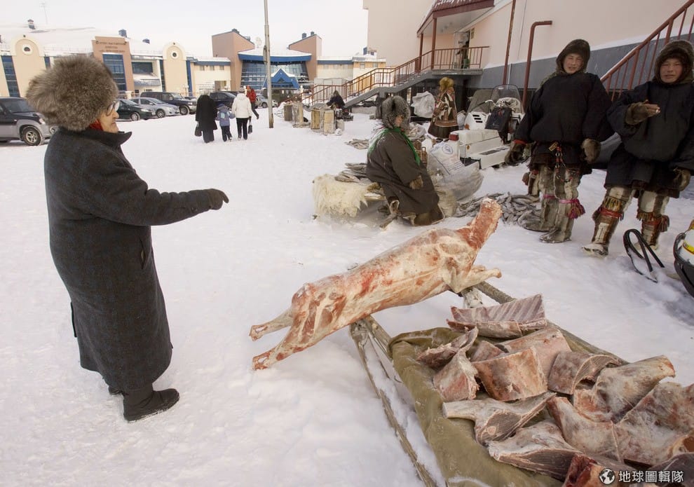 涅涅茨人正在選購馴鹿肉。專家研判炭疽桿菌的來源可能是人或動物遺體,也可能是染上病原體的野味。