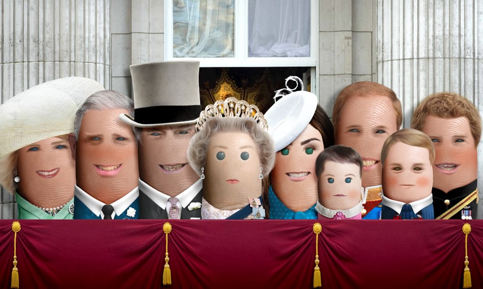 網友Dito Von Tease大小不同的手指構成英國皇室一家人剛剛好,你能分辨出誰是英國女王,誰又是威廉王子夫婦嗎?