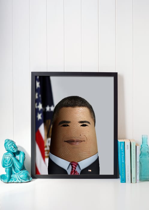 網友Dito Von Tease站在美國國旗前的手指總統歐巴馬(Barack Obama),對著鏡頭露出微笑。