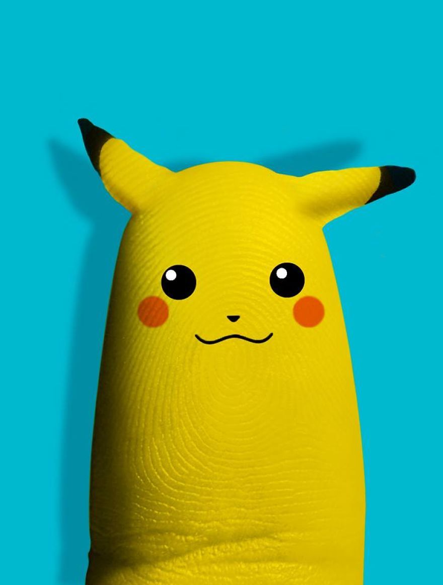網友Dito Von Tease現在最當紅的《精靈寶可夢》主角皮卡丘,和手指藝術一點也不違和。