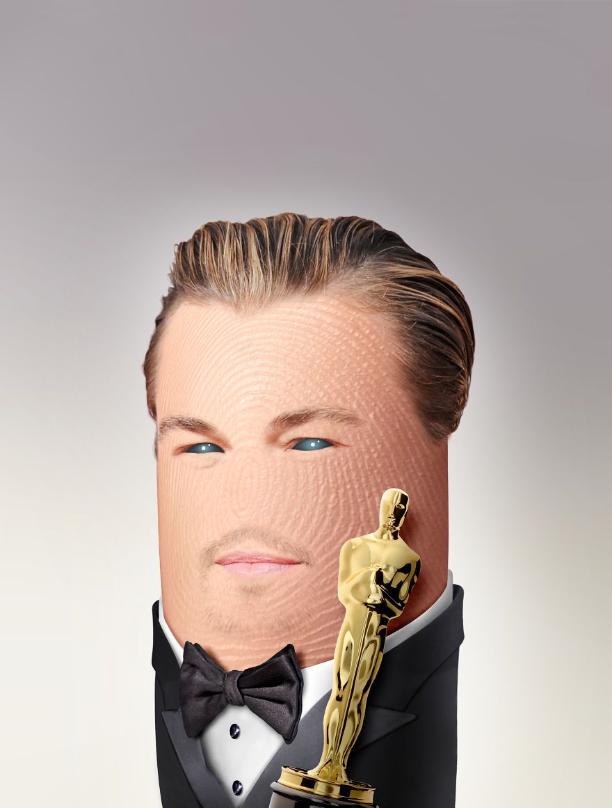 「而在現實生活中,我們躲在自己塑造的形象後,我們創造出一張面具好保護我們的獨特。這對名人來說尤其如此,他們帶著面具生活。因此,我將我的手指打扮成新聞、歷史、藝術、政治等領域的名人。」