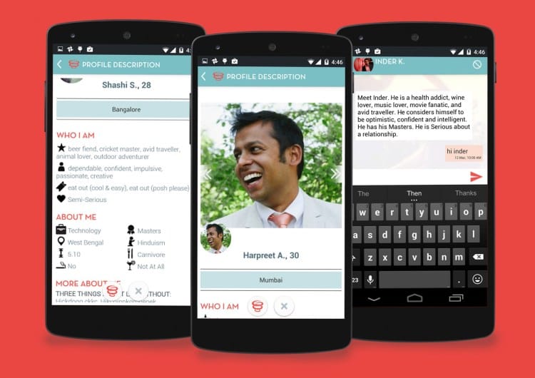 2012年於美國火速走紅的Tinder,很快蔓延至印度,Tinder指出2014年印度的下載增長率達400%[2],今年初Tinder更決定於美國境外成立首個海外分公司,地點就是有極佳發展潛力的印度[3]。其他同類型的約會App也紛至沓來,如TrulyMadly、Aisle、Thrill、Frivil、OkCupid、Woo等,其中由幾位印度人成立於2014年的TrulyMadly,用戶人數達2百萬[4]。比較特別的是TrulyMadly因應印度本土文化改良Tinder,以迎合印度用戶需要,諸如增加信用評分(Trust Score)制度,增加印度女性認識異性新朋友的安全度。