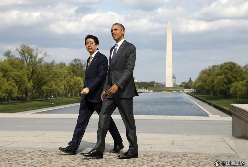 路透社2015年4月,日本首相安倍晉三訪美,除了和美國總統歐巴馬一起參觀華盛頓紀念碑外,也在軍事國防合作上開啟新頁,藉此抗衡快速崛起的中國。