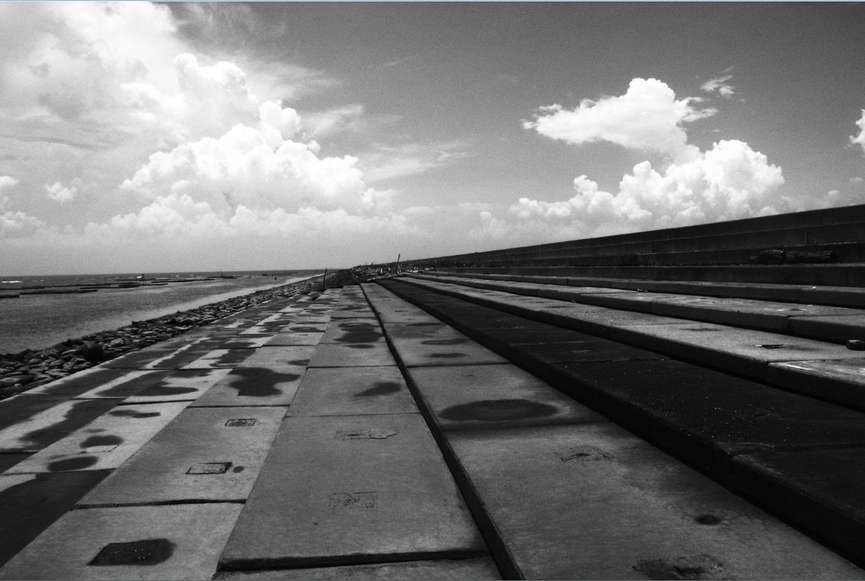 網友姚瑞中、LSD通向大海的路,唯一一條通往新興工業區的路陸橋,在Google地圖網站上的衛星顯示通往一塊長方島嶼,沒有建築物也沒有道路,只有稀疏的荒草還有廣大的黃色沙土。現場通往新興工業區的陸橋已封閉,由鐵皮屋與鐵柵門擋住,有保全人員看守,禁止進出。要不是看見旁邊已褪色的預定地資料牌,才確定此地的存在。從旁邊的海堤與蚵筏子碼頭遠眺,可略窺其一角,這一角伸延在近海上,所能見也只有沙土丘及消波塊。它們已經在這裡靜置了四年。