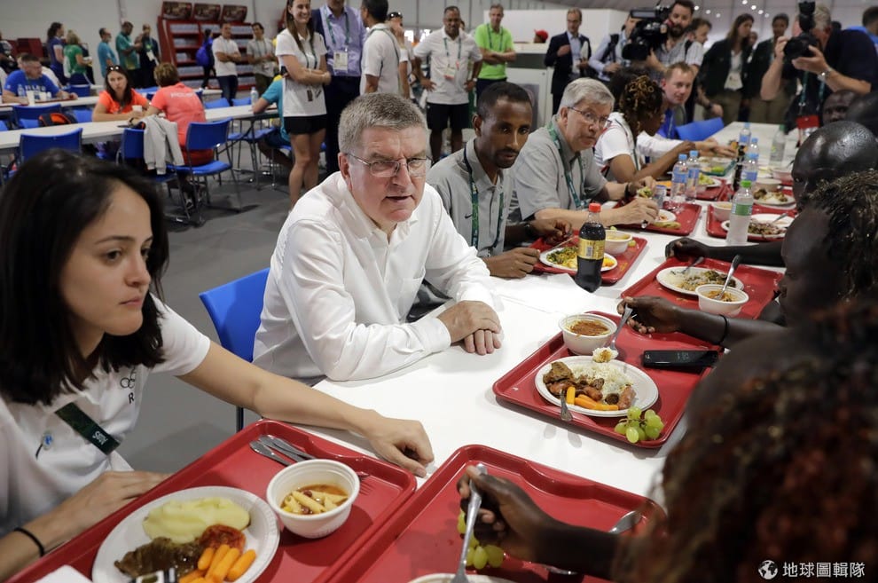 奧委會主席巴赫與難民代表隊用餐。