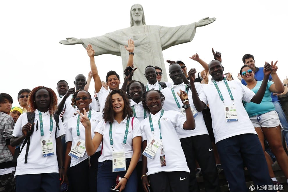 來到里約熱內盧後,難民代表隊到知名的景點基督像前合影。
