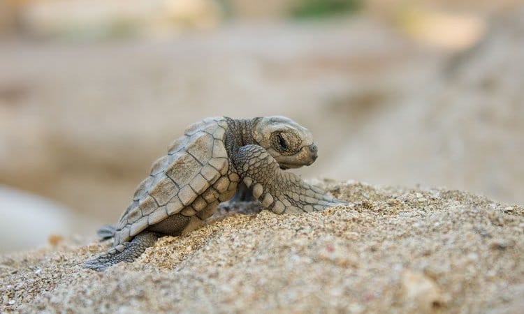 尼加拉瓜一自然保護區海灘上的欖蠵龜幼龜。 取自衛報(Photograph: Hal Brindley)