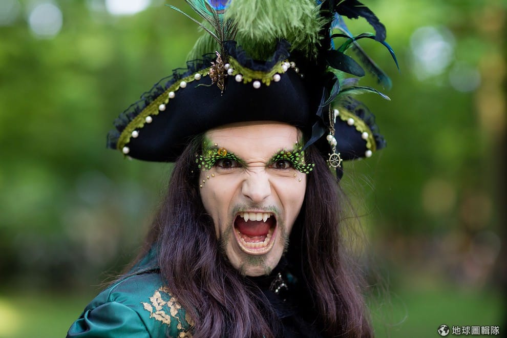 gettyimages帶著吸血鬼假牙、和海盜風格裝扮的男子。Marco Prosch/Getty Images