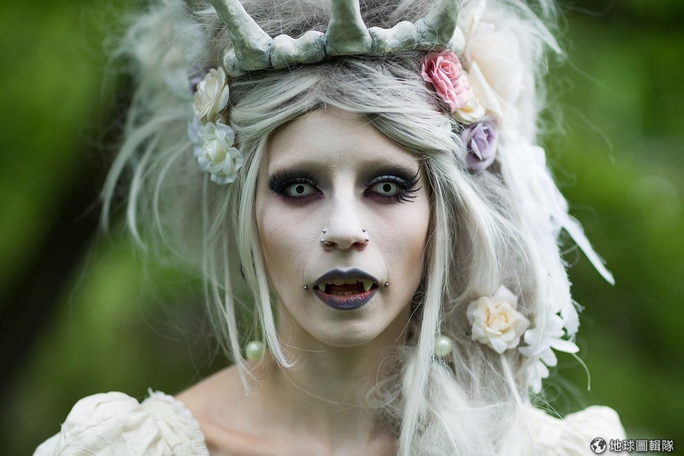 用吸血鬼風加上維多利亞風裝扮自己的女性。Marco Prosch/Getty Images