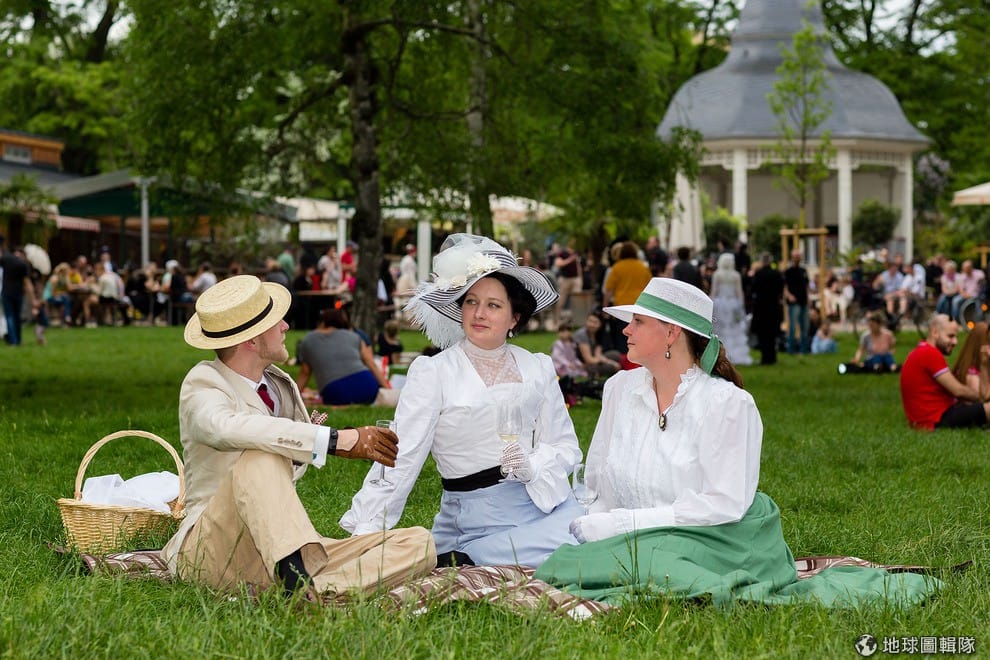 gettyimages用維多利亞風格裝扮自己的女性們,正優雅享受草地下午茶。Marco Prosch/Getty Images