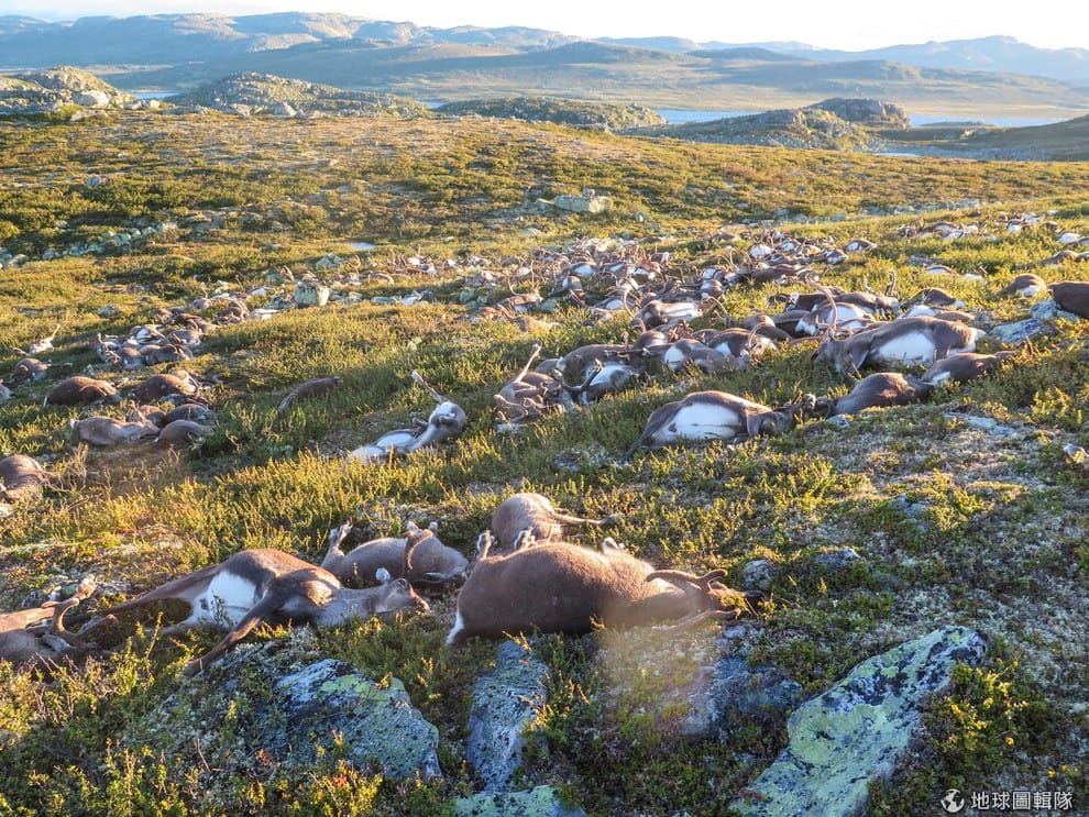 上周五(26),一名挪威環境局人員在例行探勘中,走進了一座高原,舉目所及全是馴鹿的屍體,數量高達 323隻,現場觸目驚心。