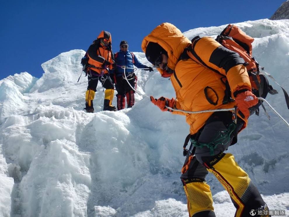 圖為前往聖母峰山上基地營的照片,由於空氣稀薄,所有人必須經過一系列的高度適應,讓身體習慣稀薄的空氣之後,才能登頂。