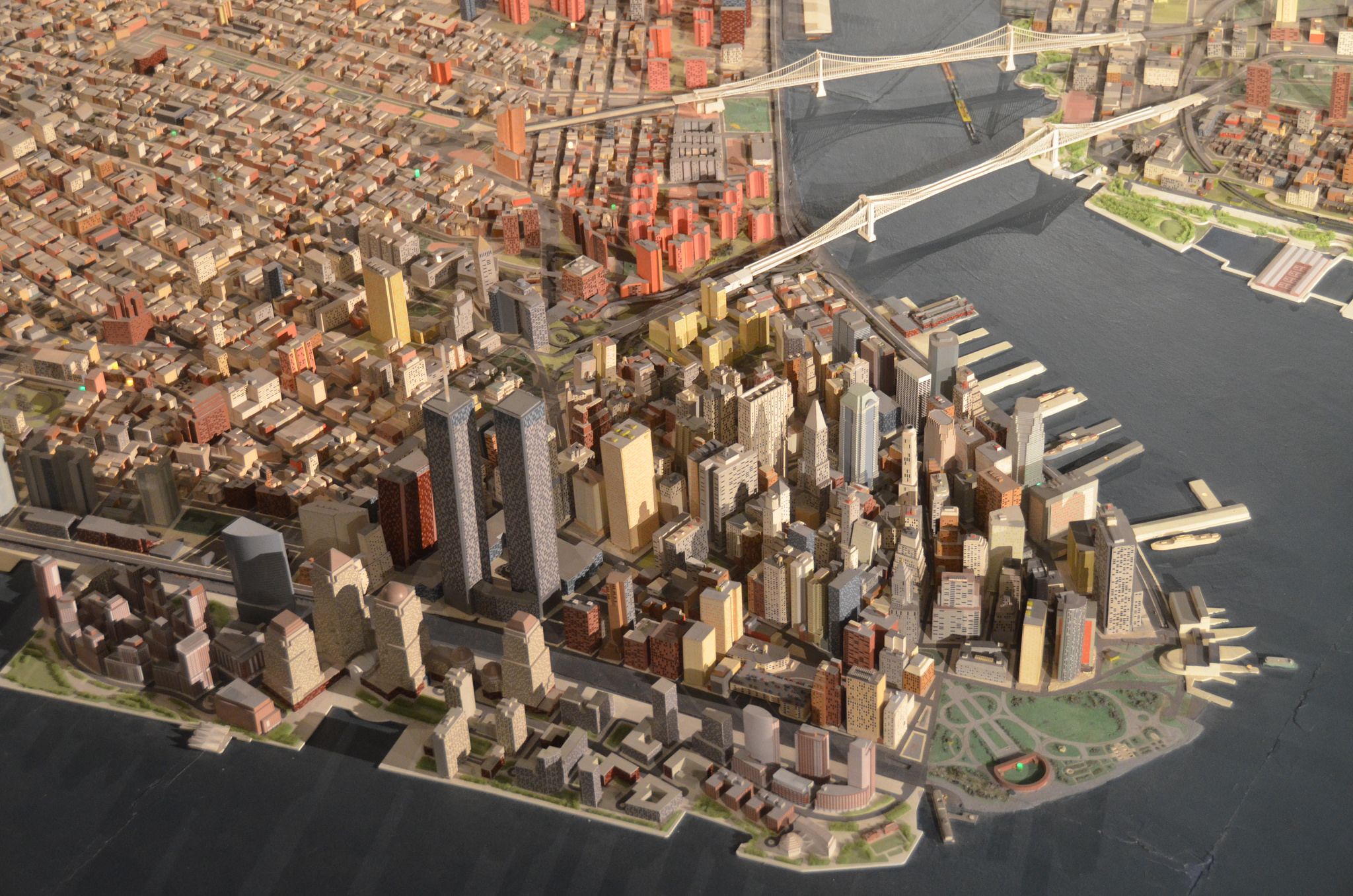 圖為美國紐約市的全景俯瞰模型,建築不斷上下左右擴張,除了彰顯進步的人類文明外,也可看出人類對環境的影響越來越大。