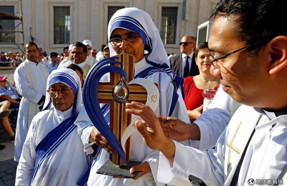周日(4),梵諦岡聖彼得廣場湧入成千上萬名信徒,他們齊聚聖彼得大教堂前見證德蕾莎修女(Mother Teresa)的封聖禮。