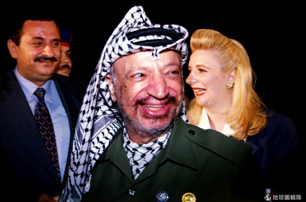 圖為前巴勒斯坦領袖阿拉法特,他在任內與以色列總理拉賓(Yitzhak Rabin)簽訂《奧斯陸協議》,堪稱以巴和平之路的里程碑,也讓他在 1994年獲得諾貝爾和平獎。