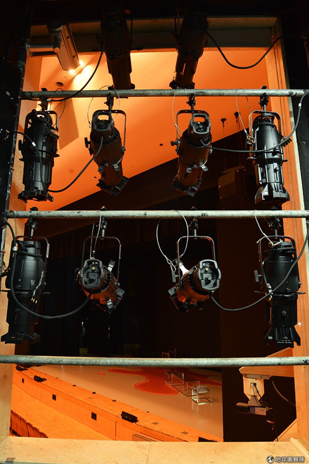 其實呢,要進到這狹窄的貓道還要點工夫,因為這邊在表演前的準備期間,不只是調整燈光和屏幕的工作人員會在這邊穿梭,保養人員、機電人員也會在這邊來回走動。想像一下,在沒有冷氣的情況下,充滿工作人員的狹窄貓道就會變得非常悶熱,但對喜愛劇場表演的他們來說,可不以為苦,能在熱愛的劇場中工作、讓觀眾體驗到最棒的表演是他們的堅持和驕傲,落幕時那如雷的掌聲對他們來說就是最大的滿足!圖片來源:袁慶華攝