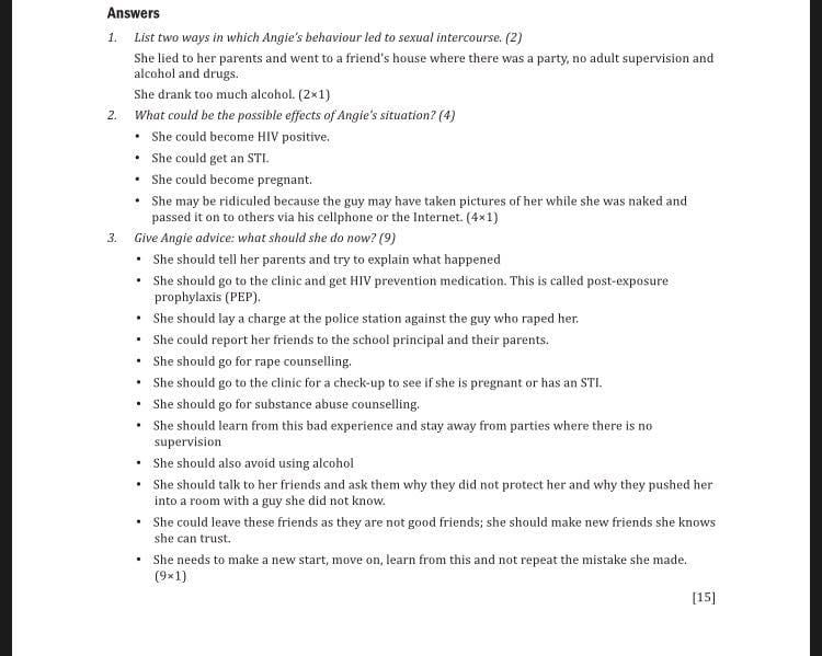 莫珀瓦(Yonela Palesa Moopelwa)在臉書上寫到:「請解釋為什麼學校會容許這樣的課本出現在學校。這段落是節錄自 10年級生活課本的 179頁,根本是在教我們的小孩把強暴合理化!當這個國家已經有這麼頻繁的強暴事件發生,這種內容怎麼還能被允許?」