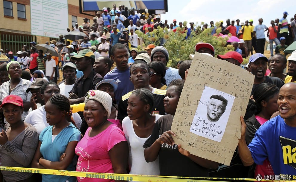 2013年,一群人聚集在南非當地的警察局外,對於犯下姦殺罪的嫌疑犯表示抗議。根據聯合國在 2015年的統計,南非每天都會發生 147起性犯罪,在世界上有著最嚴重的強暴比率。