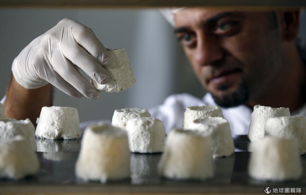 路透社做好的起司,也會交由其他員工仔細檢查。事實上,由於驢奶本身的酪蛋白不夠做成起司,所以裡面還添加了 40%的羊奶來做補充。