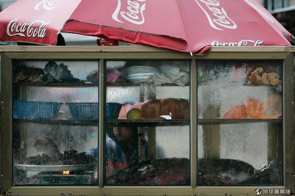 加薩走廊的市場中,小男生頂著大雨奮力叫賣。Warrick Page/Getty Images