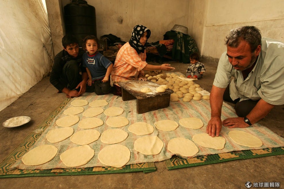 簡單地用白麵團做出的圓麵包,是中東地區特有的一種食物。Abid Katib/Getty Images