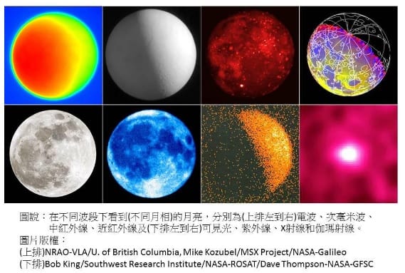 網友Ovi Gherman在電波、次毫米波段,月球就是一片平坦,而且月球本身只能反射太陽的光,所以也沒有美感。由此可見,在可見光波段看月亮,還是比較有賞月的意境。