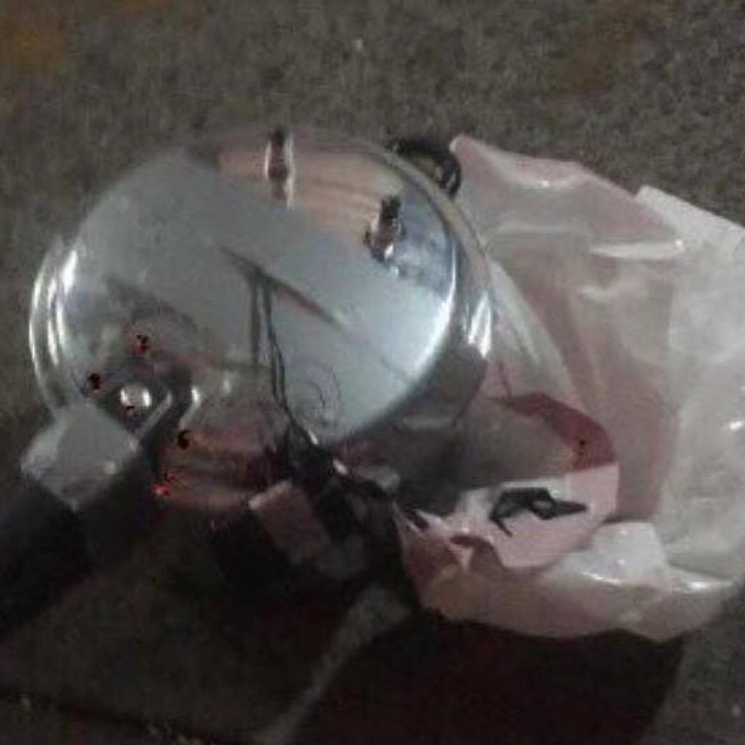 圖為警方在雀兒喜爆炸案發現場不遠處發現的第二顆炸彈,兇手用壓力鍋、手機以及Tannerite製造出威力強大的炸彈。