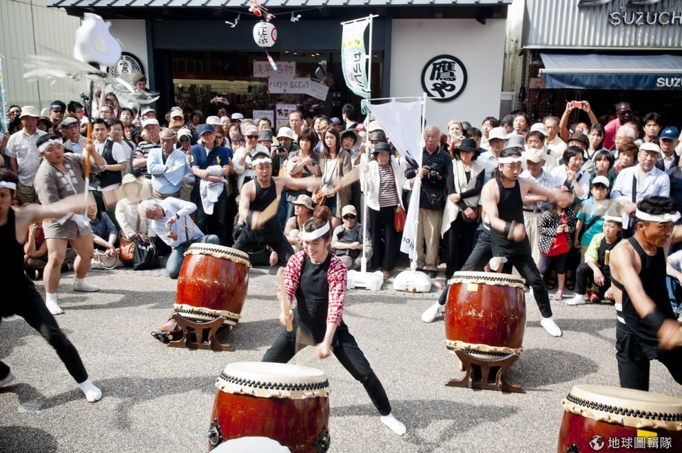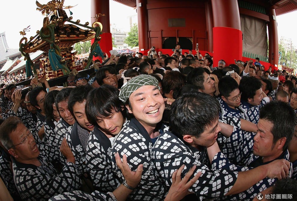 星期五熱鬧的活動就開始啦!東京淺草地區會有大規模的遊行表演,一輛輛的花車載著表演者從柳街遊行到神社,有人吹笛,有人打鼓,歌者、舞者開心的唱歌跳舞,為三社祭揭開序幕。Keith Tsuji/Getty Images