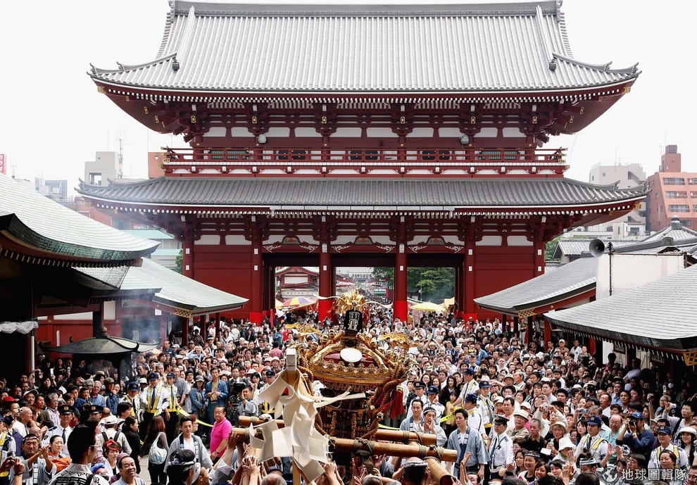 兩兄弟開始每天膜拜觀音像,土師真中知後來出家當了和尚,把自己的家改建成寺廟,供奉觀音,這座寺廟也成為後來的淺草神社。為了紀念這三個建立淺草神社的人,日本人每年都舉辦盛大的祭典慶祝。Keith Tsuji/Getty Images