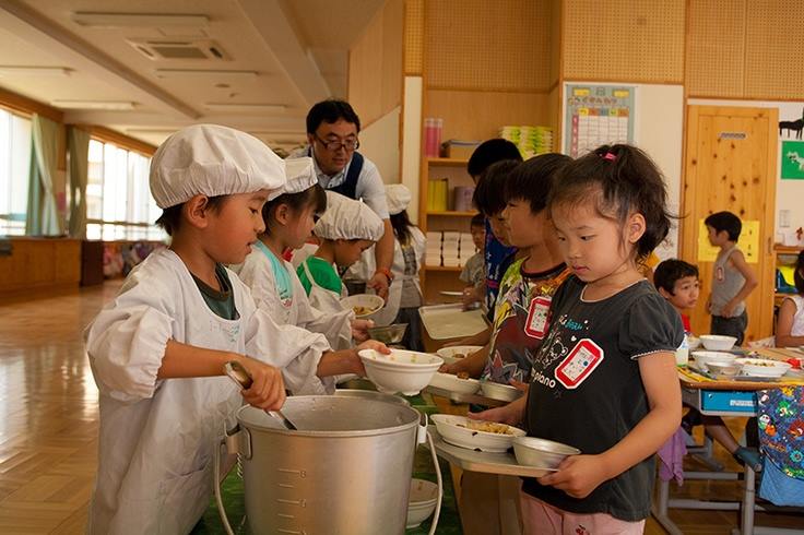 孩子們在學校一起打掃,輪流打菜,無形中養成了對公共事務的責任感。