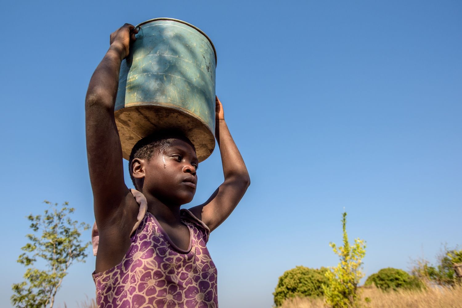 在尚比亞南部,妮維許(Nivesh)每天得花四小時取水,每當她穿著僅有的涼鞋、頭頂沉重水桶在崎嶇路上走著,水桶灑出的水如淚水般從她的雙頰滑落,「我覺得脖子都要被壓斷了,而且取水很花時間,讓我上學總是遲到。」有時候妮維許選擇花一整天取水,只為了第二天可以去學校上整天的課。