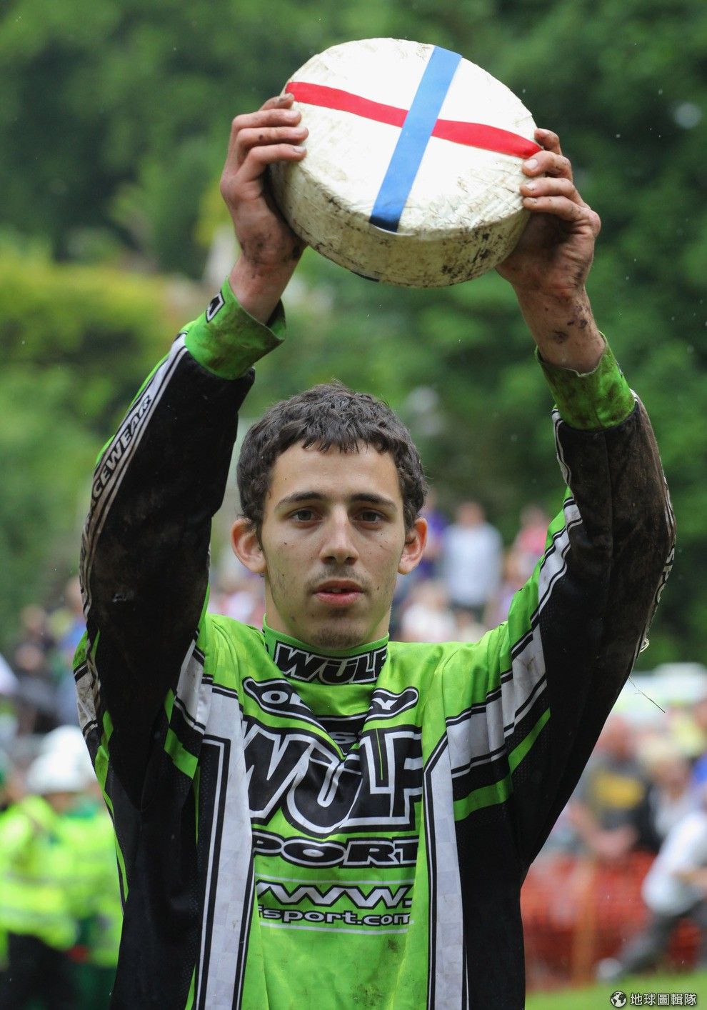 照片中是今年起司賽中第一輪勝利者,他是來自美國科羅拉多州的肯尼(Kenny Rackers),他特地前里迢迢地從美國飛到英國,就是為了要在這個年度賽事中奪下冠軍。Matt Cardy/Getty Images
