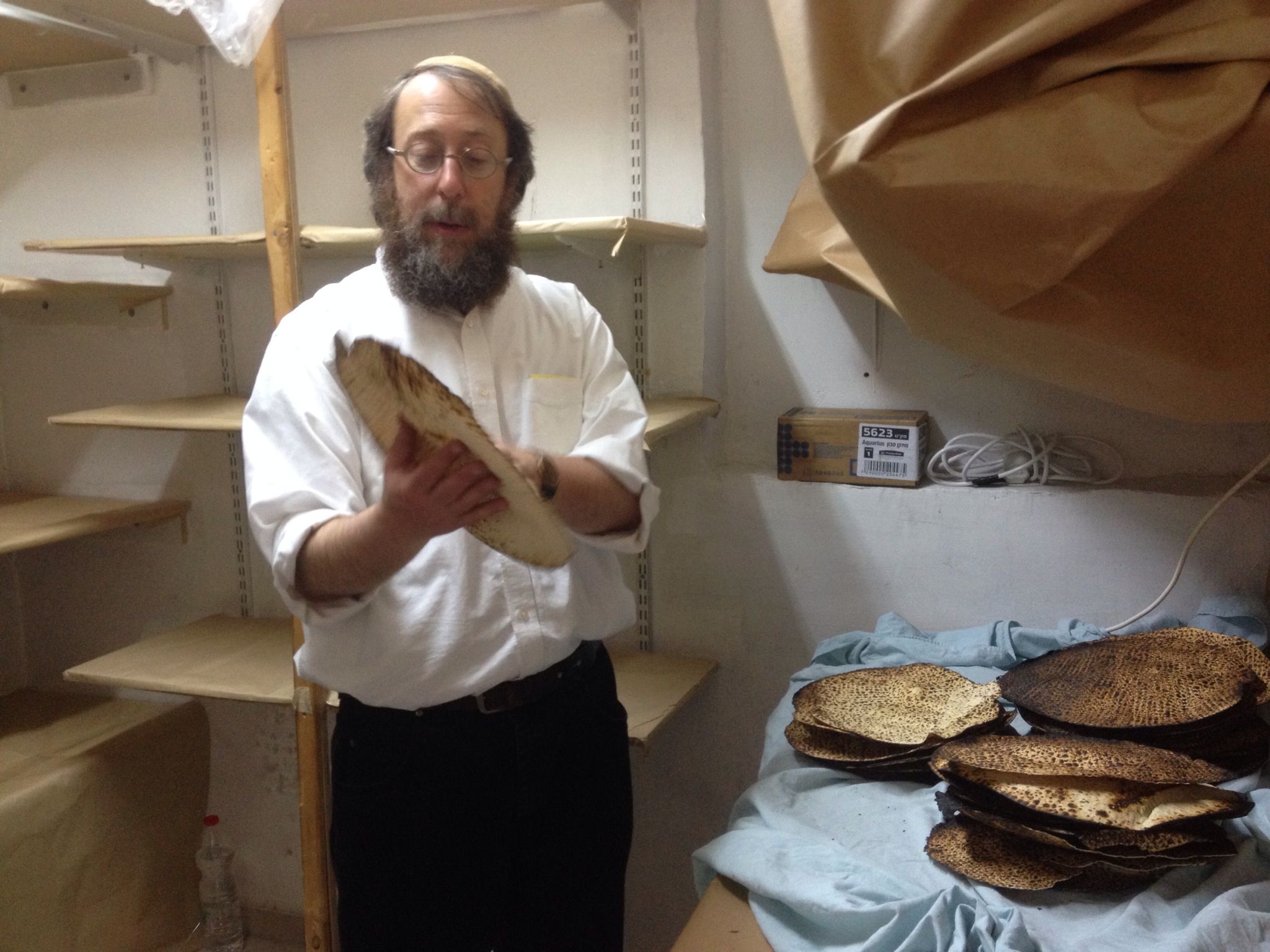 網友San Francisco Public Library圖為設立一套新潔食認證的拉比萊博維茨,他正在準備逾越節(Passover)猶太教信徒會吃的無酵餅(Matza)。