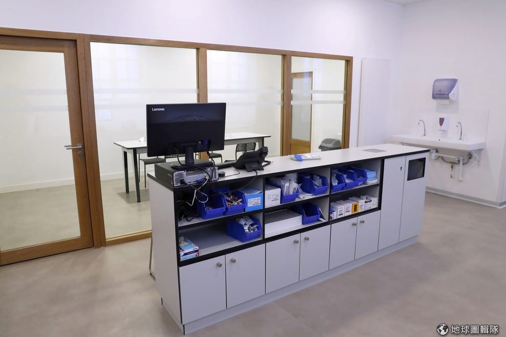 圖為打掃地一塵不染的巴黎安全吸毒室,醫護人員和社工在裡面隨時待命,照顧吸毒者的身心健康。