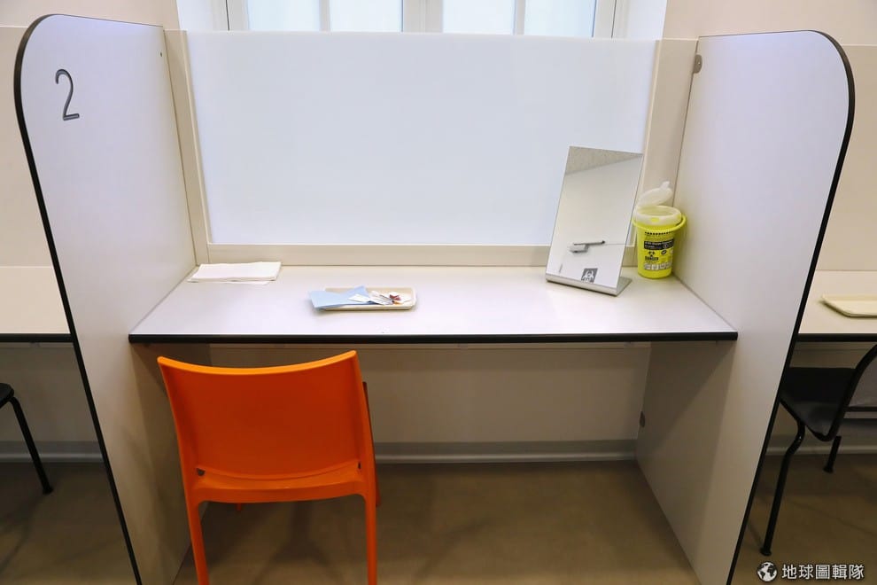 在安全吸毒室內,成癮者可以在一個個小隔間內吸毒,保有相對隱私。