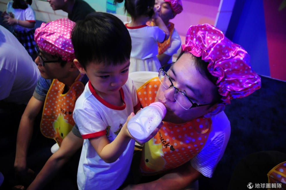 在杭州的父親節上,父子們交換角色,互相扮演照顧與被照顧者的工作。