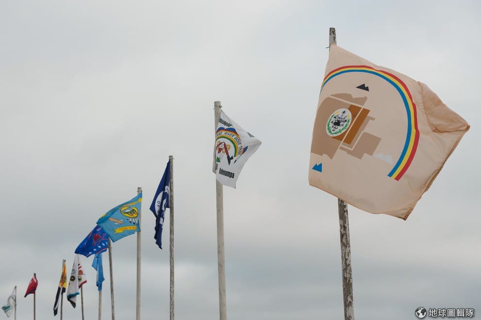 圖片拍攝於今年 9月,許多部落紛紛到抗議現場插上他們的旗幟,表達對立岩蘇族的支持。