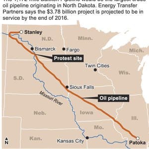 然而,由於北達科他州的管線會設立在立岩蘇族(Standing Rock Sioux)的水源地密蘇里河(Missouri River)附近,立岩蘇族的族人擔心設立油管會污染當地的文化遺產與水源,因此,他們從今年 4月開始便集結了 200個部落參與這場抗戰。也讓美國政府命令該組織暫時停止相關建設。