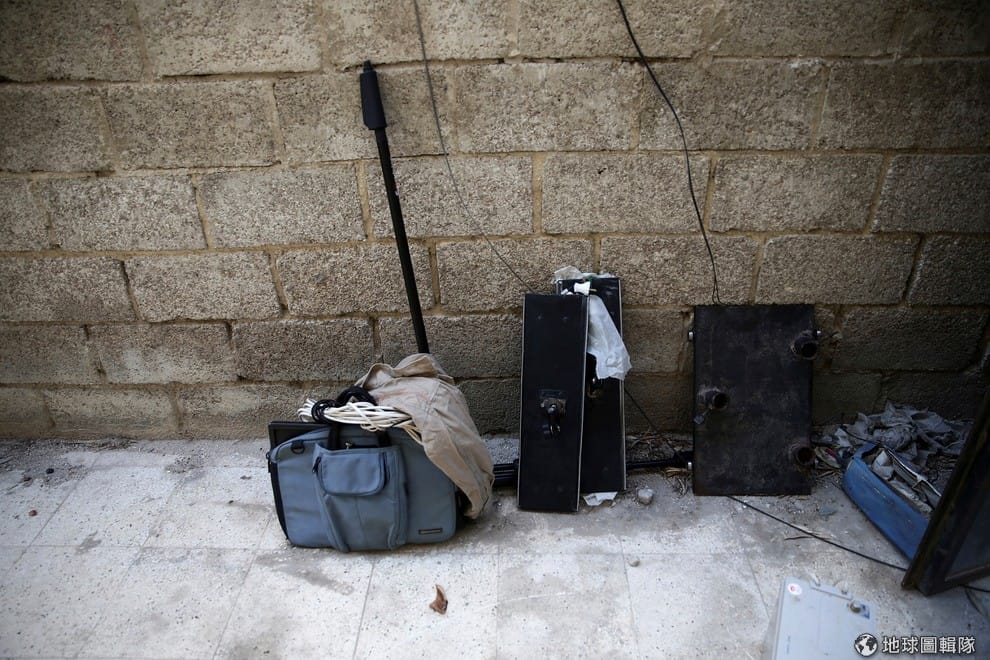 路透社打光板與監控拍攝狀況的螢幕被擺放在牆邊,在資源有限的情況下,一切都非常簡樸。