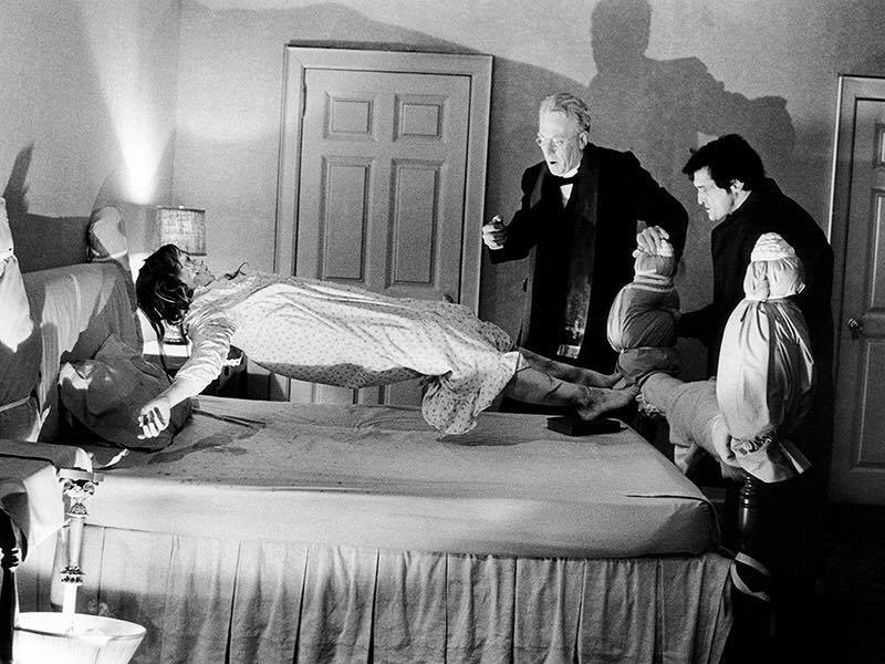 在美國經典恐怖片《大法師》中,被惡魔附身的女子飄浮在空中。