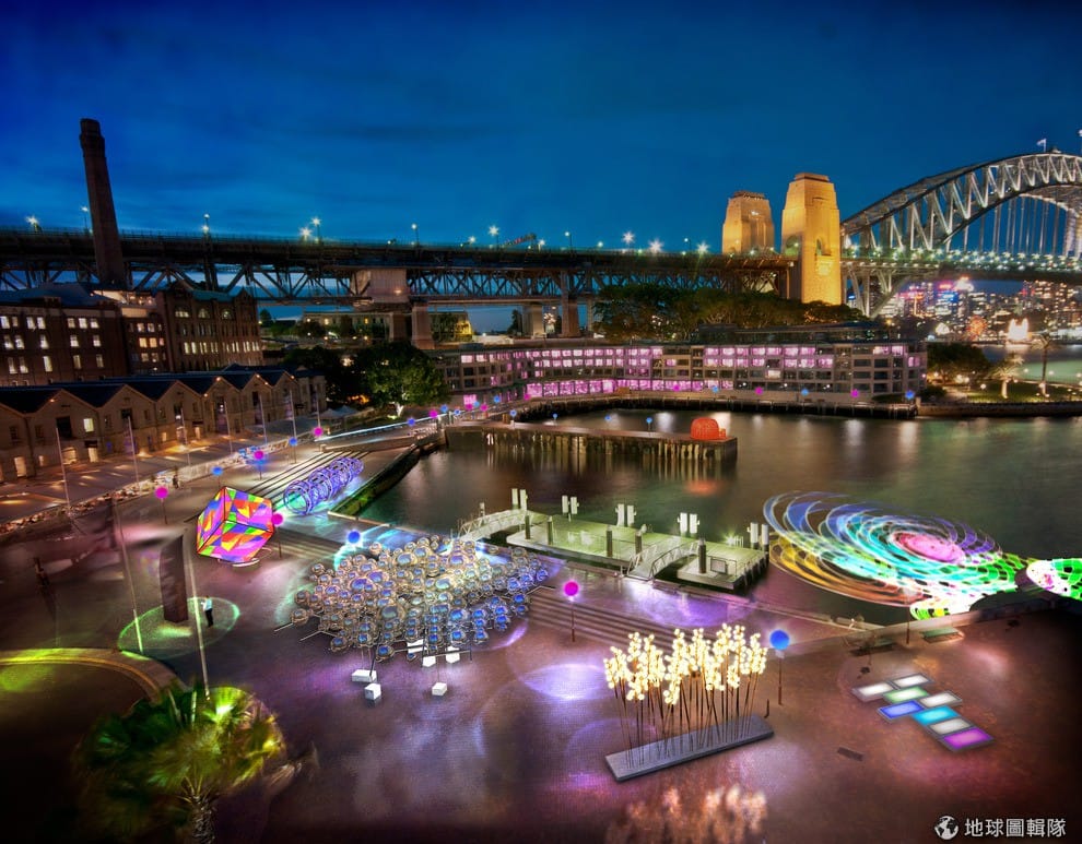 雪梨有名的現代藝術館當然也會加入這場燈光藝術盛宴,藝術館外牆是美麗的藍光。Cameron Spencer/Getty Images