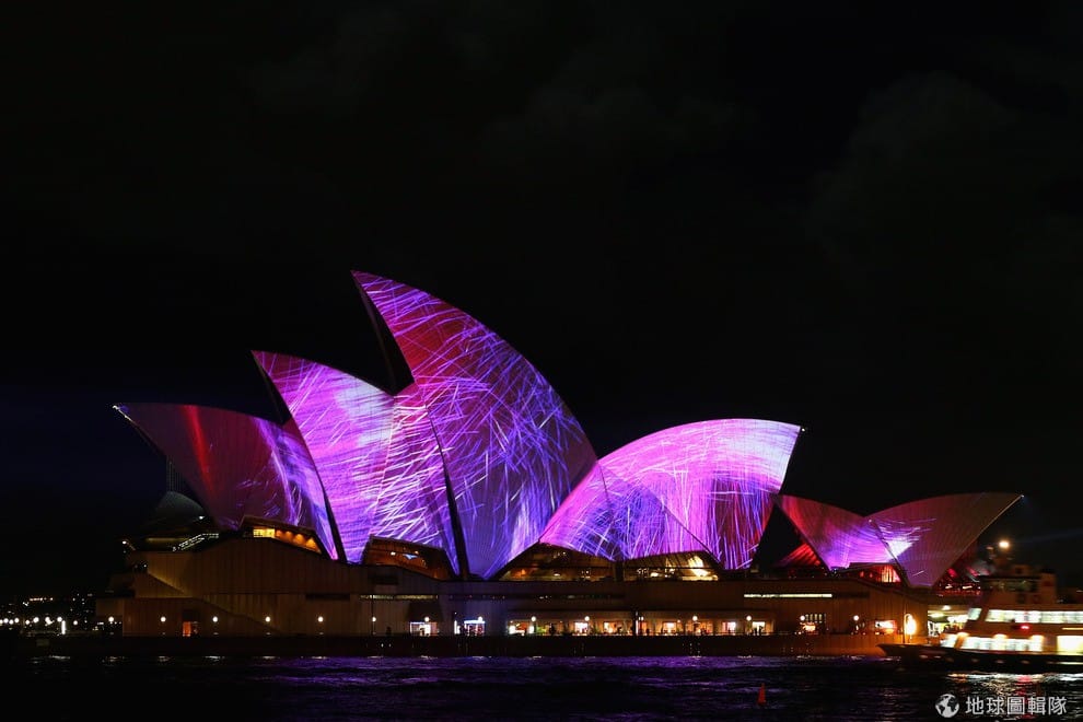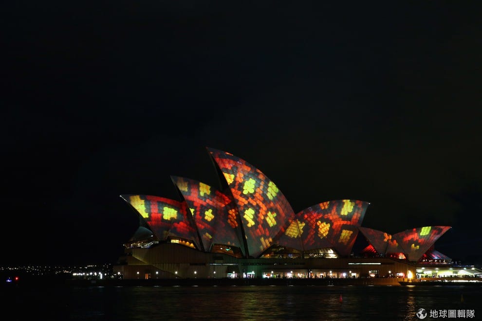 今年雪梨歌劇院依然表現亮眼,不同主題的畫面在劇院外不斷變換。Cameron Spencer/Getty Images