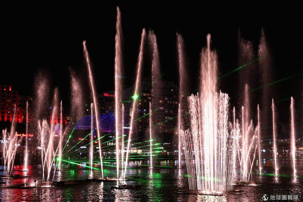 噴泉水舞與燈光是最佳的表演夥伴。Cameron Spencer/Getty Images