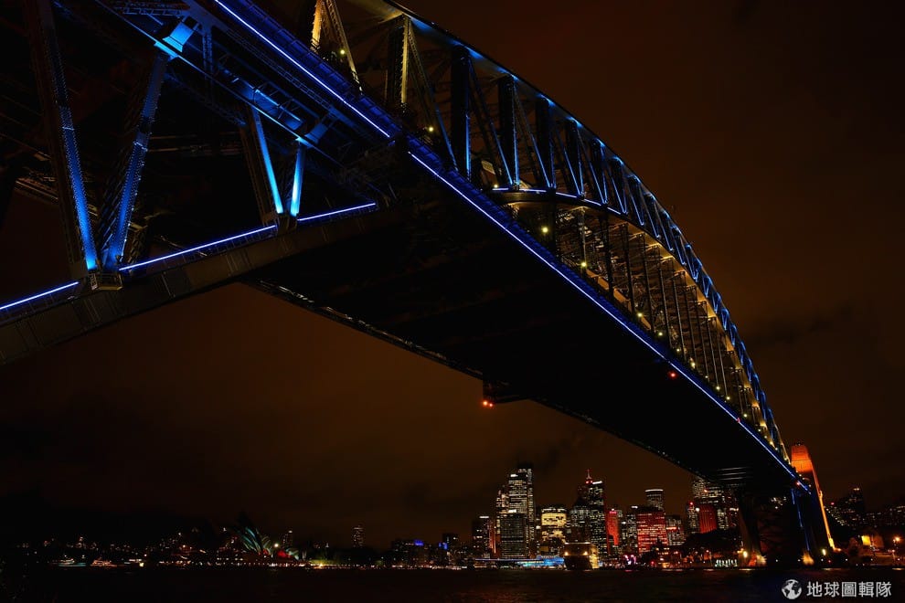 雪梨港口大橋在夜色中呈現另種美景。Cameron Spencer/Getty Images