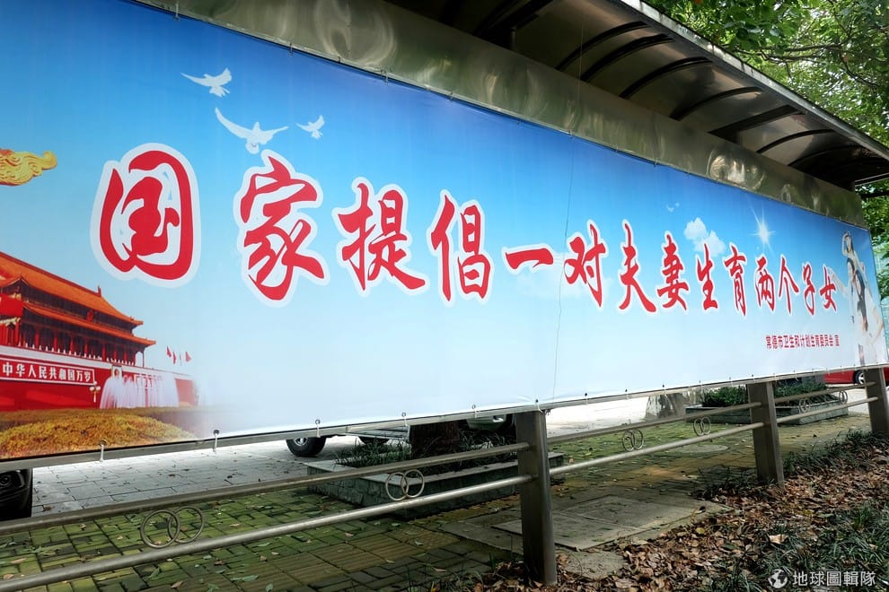 路透社現在中國已經改一胎化政策為二胎化,從圖中的標語也可以看到這種轉變。