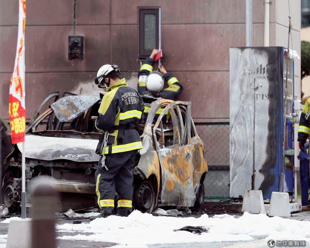 網友トレンドな情報消防人員站在爆炸停車場蒐集線索,其中有一輛車屬於嫌犯栗原敏勝。